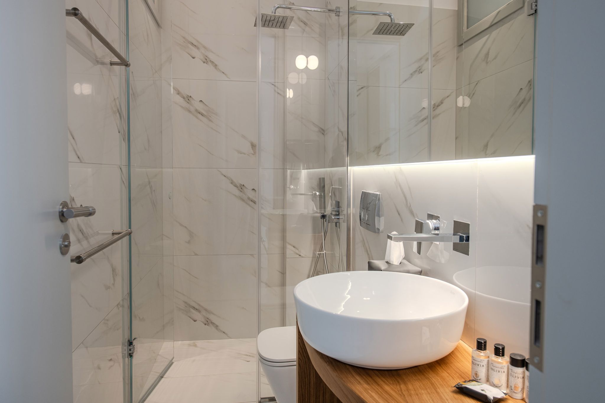 This room is 16 sq m. and can accommodate up to 2 people. The light gray tones of the room and the furniture combined with the wooden floor create a sweet romantic atmosphere that embraces you from the first moment. It has a large King size bed and a comfortable luxurious bathroom with shower equipped with all modern amenities. The modern design of the room is complemented by a large mirror-TV as well as a spacious wardrobe.